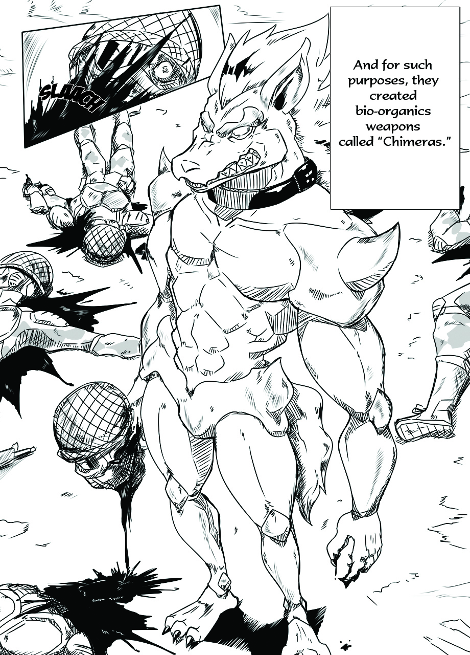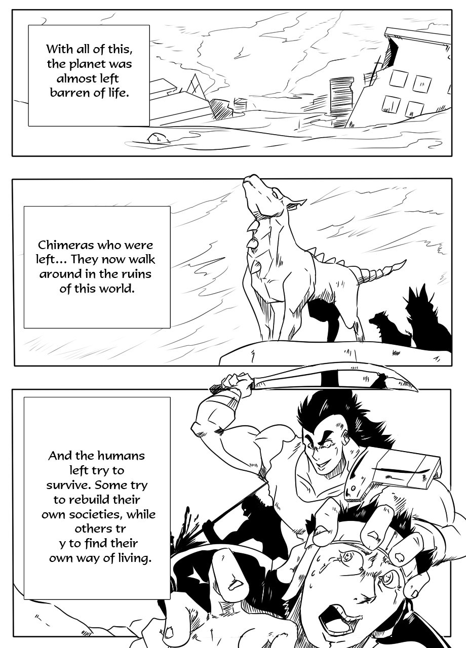 Dragon Trigger is a story set in a post apocaliptic world, the classic ''where the strong survive'' in this case both humans and the remains of a living biological weapons called ''Chimeras''.